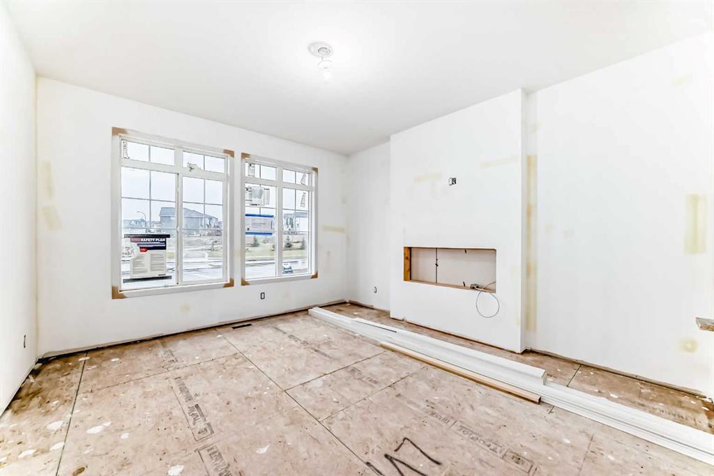 Welcome to this modern 3-bedroom corner lot duplex in the sought-after community of Glacier Ridge. The main floor offers an inviting living area with an electric fireplace, knock-down ceilings, vinyl flooring, and a stylish kitchen complete with a central island, quartz countertops, a built-in microwave, and a fridge with a water line. A half bath on this level provides added convenience for guests. Upstairs features three generous bedrooms, including a primary suite with its own 4-piece ensuite, plus a second 4-piece bathroom and a convenient laundry room. The basement includes a separate side entrance, a 9’ foundation, and rough-ins for a future suite, offering excellent potential for added living space or income generation. Outside, you’ll find a deck with a built-in gas line for your BBQ, plus a gravel parking pad providing easy off-street parking. Located in Glacier Ridge, one of Calgary’s newest and most desirable communities, this home blends modern comfort with everyday convenience.