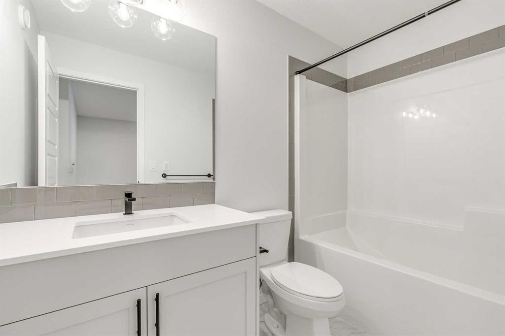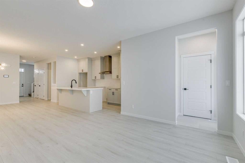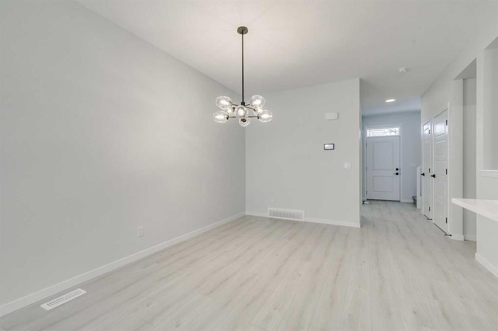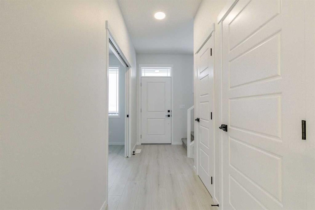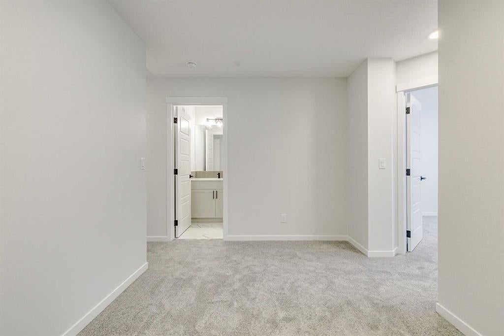 Welcome to this stylish Morrison Homes spec property located in the beautiful community of Sirocco in Pine Creek, SW Calgary. The main floor offers a functional layout with an enclosed den perfect for a home office, a bright living room, luxury vinyl plank flooring, pot lights, a walk-in pantry, and a well-appointed kitchen featuring quartz countertops throughout and a modern island ideal for meal prep and gathering. A convenient 2-piece bathroom completes the main level. Upstairs, a spacious bonus room provides an additional living area separating the three bedrooms. The upper level also includes a dedicated laundry area for added convenience. The primary bedroom features its own 3-piece ensuite with a standalone tiled walk-in shower, while the remaining two bedrooms are served by a comfortable 4-piece bathroom. The basement is currently undeveloped, offering a blank canvas for your own customization. This home also includes a separate entrance, basement suite rough-ins offering excellent potential for a future suite development (A secondary suite would be subject to approval and permitting by the city/municipality). With thoughtful design, quality finishing, and room to grow, this property delivers exceptional value in one of Calgary’s rapidly developing SW communities.