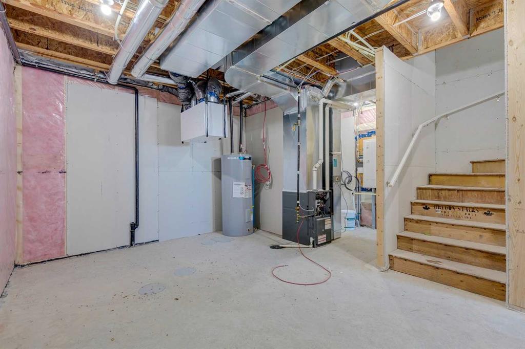 Welcome to this modern Morrison Homes 3-bedroom duplex in the sought-after community of Glacier Ridge. The main floor offers an inviting living area with an electric fireplace, knock-down ceilings, vinyl flooring, and a stylish kitchen complete with a central island, pantry, quartz countertops, a built-in microwave, and a fridge with a water line. A half bath on this level provides added convenience for guests. Upstairs features three generous bedrooms including the primary bedroom with its own 4-piece ensuite, plus a second 4-piece bathroom and a convenient laundry area. The basement includes a separate side entrance, a 9’ foundation, and rough-ins for a future suite (a secondary suite would be subject to approval and permitting by the city/municipality) offering excellent potential for added living space or income generation. Outside, you’ll find a deck with a built-in gas line for your BBQ, plus a gravel parking pad providing easy off-street parking. Glacier Ridge Village is expected to open in 2026 and will feature a skating ribbon, walking paths, basketball courts, an all-ages playground, spray park, tennis court, ice rink, patio spaces, firepit, and a toboggan hill. Inside, residents will enjoy a gymnasium, rentable rooms for programs and private events, banquet space, and welcoming seating and gathering areas. Located in one of Calgary’s newest and most desirable communities, this home blends modern comfort with exceptional future amenities.